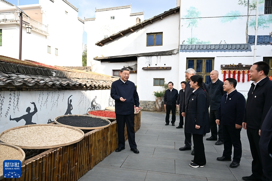 10月10日至13日,中共中央总书记、国家主席、中央军委主席习近平在江西考察。这是11日下午,习近平在上饶市婺源县秋口镇王村石门自然村考察。新华社记者 谢环驰 摄